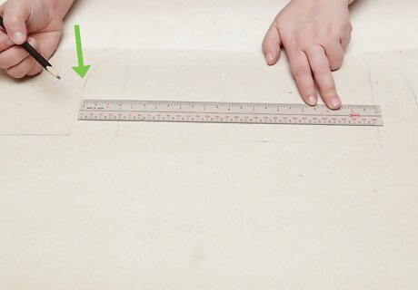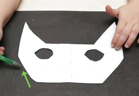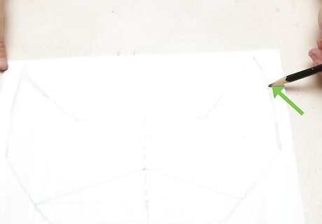Sketch the outline of the ears and top of the mask. The ears will curve upward from the ends of the original horizontal line. Draw two curved vertical lines from the edge of the original line. These lines should equal the height measurement from the nose to the forehead taken earlier plus an additional 3 inches (7.6 cm). Draw another curved line on the end of each "side" line. The lines should come inward, forming curved triangles, and the base of each triangle should be about 2 inches (5 cm) wide. These triangles form the ears of the mask. Draw a line connecting the two top triangles across the top of the mask.