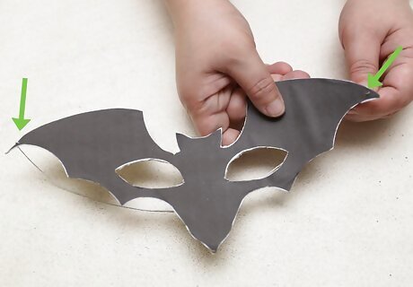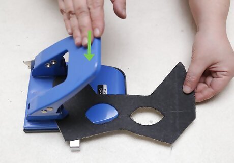 Punch two small holes along the side of the mask. Punch the holes into each side of the mask, near the edge and aligned with the center of the eye holes. A hole punch works well for this, but you could also use the tip of your scissors.