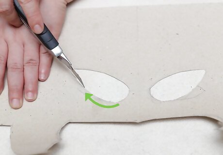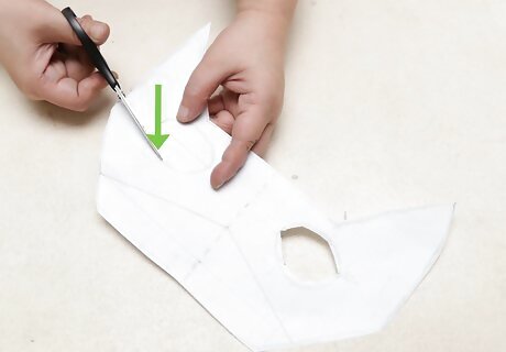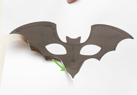 Cut out the mask. Cut around the edge of the mask template with scissors to cut out the mask. Poke scissors into the eye holes to cut out the eyes in the middle of the mask.