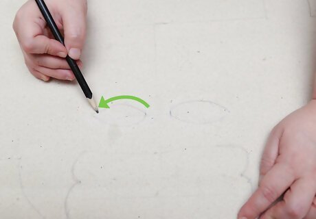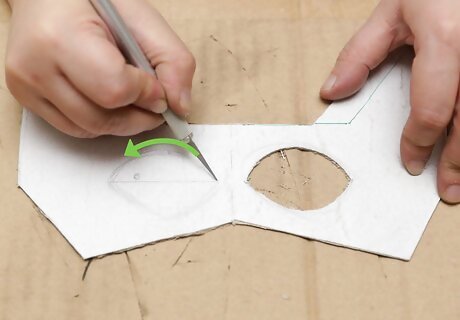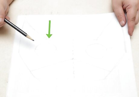 Draw eye holes. Sketch out two almond-shape eyes holes. The position of the bottom of the eye holes should roughly match the distance between the wearer's nose and the bottom of the wearer's eyes. Measure from the center of the original horizontal line to the bottom edge of the inner portion of the eye. The eye holes themselves should be about twice the sides of the wearer's eyes. Angle the eyes slightly so the narrow part of the almond shape points inward and downward.