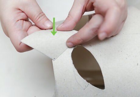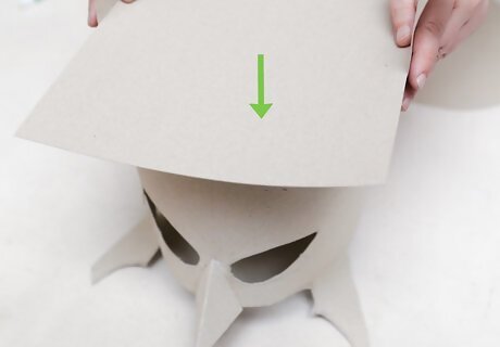 Cut out and attach cardboard for the nose. You will need to cut out two triangular pieces of cardboard to build your nose piece. After cutting the pieces out, attach them to the mask along your nose outline using more duct tape. You may find it easier to remove the mask temporarily for this part. Tape the cardboard triangles to the mask to create a pointed nose piece.