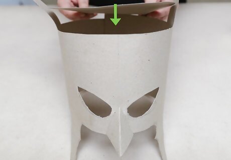 Connect the two edges. Carefully curve the two ends in so that they meet at the back of the mask. Tape or glue them together. There can be between 1/2 inch and 1 inch (1.25 cm and 2.5 cm) of overlap between the two ends.