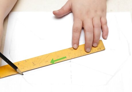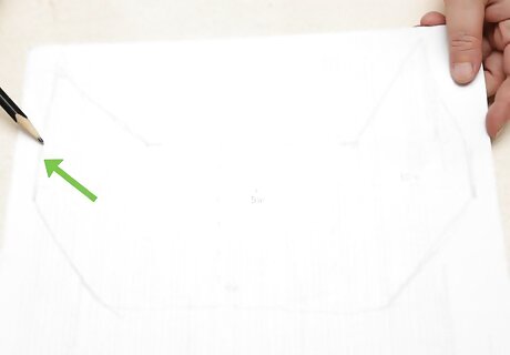 Draw the part of the mask that will cover the nose. Find the midpoint of the line and make a mark 1 inch below the line. Use a ruler to draw a line from the right-hand end of the line to this point. Draw a second line from the left-hand end of the line to this point. Draw two downward-angled lines from the edges of the original line. The lines should meet together in a slight peak about 1 inch below the center of the original line.