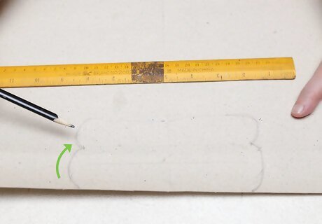 Draw the top outline of the mask. You will need to draw the ears along with the upper edge of the mask. Measure the amount of space between your ears using a tape measure. Start at the front of one ear and wrap the tape measure around the front of your face until you reach the front of your other ear. Repeat the measuring process with the back of your head. Start at the back of one ear, wrap the tape measure around the back of your head, and bring it up to the back of your other ear. Divide the back measurement in half and add 1/2 inch (1.25 cm). On the left side of the cardstock, draw a horizontal line of this length 5 inches (13 cm) down from the top of the rectangle. Draw a matching line on the other side of the cardstock. In between the two lines, draw a third line that roughly matches the front measurement of your face. Leave 1 to 2 inches (2.5 to 5 cm) of empty space in between this line and the original two. Draw a vertical line at each end of this inner line. The line should extend up to the top of the cardstock. Draw a curved line from the top of these vertical lines down to the ends of your original horizontal lines.