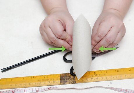 Create the ears. Each ear should be made from three triangular strips of cardstock, joined together to make a narrow prism shape. Stuff the prisms with newspaper, and tape them together with more duct tape. Attach the mask ears at the top of the mask so that they line up with your actual ears. Use more duct tape to attach the ears. As you wrap the ear shapes in duct tape, you should bend them slightly inward so that they have a slightly more rounded and less rigid appearance. There are no exact measurements for the ears, but in general, they should be fairly tall and narrow. As an estimate, make the base about 2 inches (5 cm) wide. The length should be about 6 inches (15.25 cm).