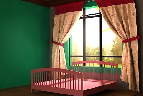 Buy a suitable canopy fabric. This should ideally be a see-through, or translucent fabric. Ideally, the fabric must be cut so that it covers the whole top of the canopy made by the lumber, as well as the front and back. The sides should be saved for curtains. Measure the areas and cut the fabric accordingly.