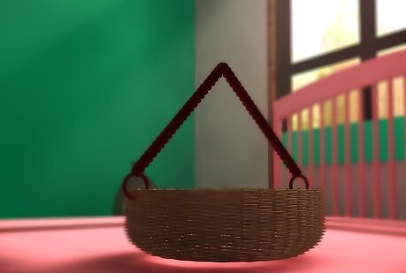 Gather your materials. You'll need a hanging fruit basket. This should be the type that has only one basket, and four hanging chains that meet up at the center hook. It should also be made of sturdy metal, and not plastic or very thin metal. You'll also need mounting hardware for the basket, wire cutters, and four curtain panels.