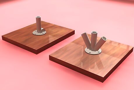 Insert the dowel rods. Put the dowel rods into the pole holder. You should be able to put it all the way in (it should not be too tight). If it is loose, you can make a better fit using wood shims or cardboard pieces.