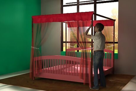 Mount the hook. Following the manufacturer's instructions for the mounting hook you got, attach it to the ceiling above the bed. It should be mounted in a ceiling stud, which may require a stud finder to locate.