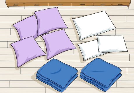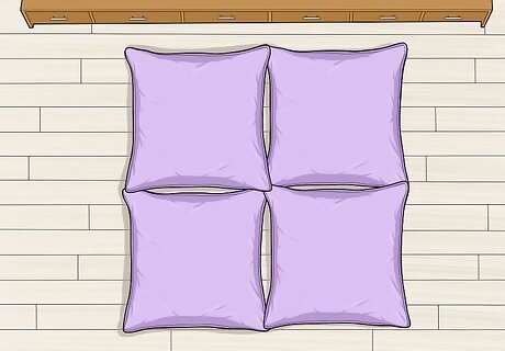 Place all four cushions on the floor to create a 2-by-2 array. This means that you should create a square out of the four cushions.