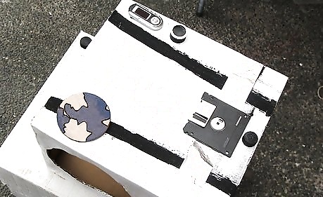 Create a helmet. Take a smaller box, and cut a square out. Be sure that it is big enough for your face to stick out of.