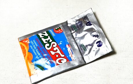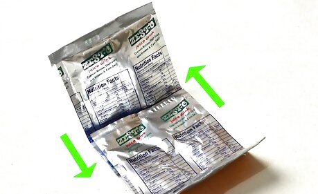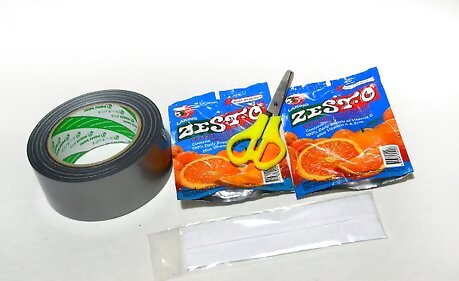 Get your supplies. You'll need two aluminum/plastic, standard rectangular juice pouches (think Capri-Sun, Kool-Aid Jammers, or similar products), some duct tape, stick-on velcro strips, and some scissors.