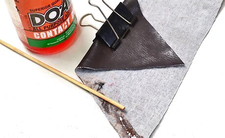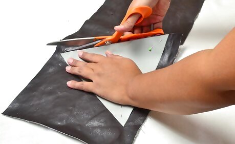 Use your pattern to cut out your leather. Place the pattern on the wrong side of your leather, trace it, and cut it out very carefully with the box cutter.