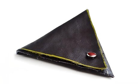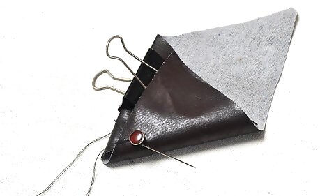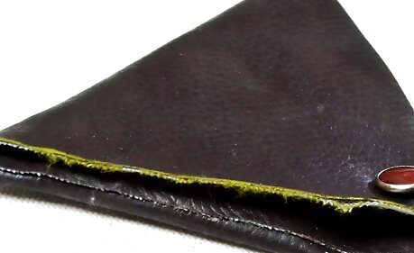 Fold the leather. Fold the top point down to the center of the bottom edge and then fold one of the sides over to cover it. The unfolded side will become the opening flap.