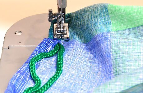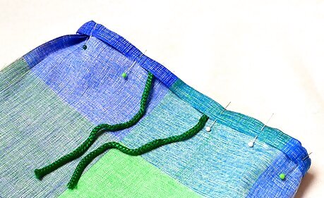 Place your drawstring. Place the string within the hem to use as a drawstring.