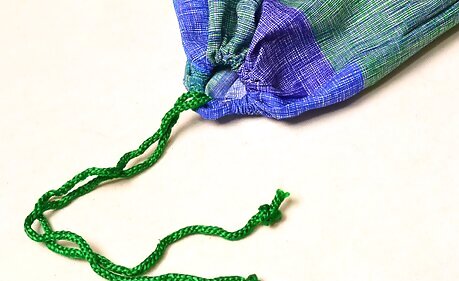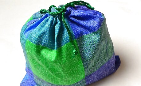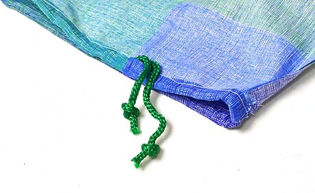 Pull the drawstrings to gather the opening of the bag. Tie the drawstring in a bow or double knot.