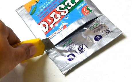 Prepare your juice pouch. Cut a long hole on the wide, flat bottom portion of the juice pouch to rinse it out. If your juice pouch is the type with a plastic drinking tube attached, you'll need to carefully remove it, but using this type of pouch is not recommended.