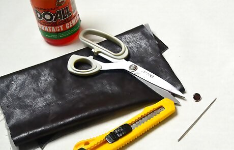 Get your materials. You'll need fake leather or very thin real leather, a box cutter, strong glue, a button, tread and a strong needle, and scissors.