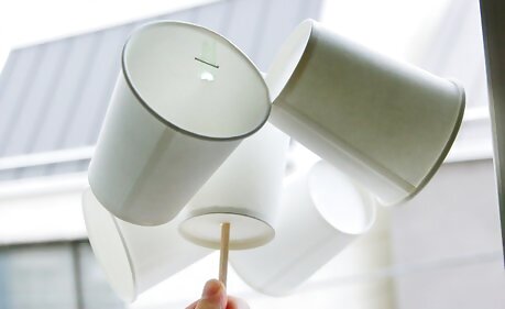 Cut a hole in the bottom of the center cup. Make this hole large enough to insert a pencil or other small pole. It should be exactly in the center of the cup’s base. This hole will allow you to set the center post in your anemometer.