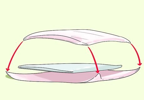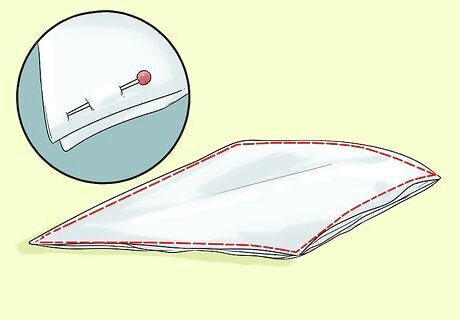 With straight pins, secure the cloth to the outer pillowcase. This makes it more easily removable. Fold the two joined corners in half. Where it folds, fasten it together with a straight pin. Continue doing that all the way around until the gaps between the pins is fairly small.