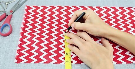 Measure your fabric to be 32 by 4 in (81 by 10 cm). Use a measuring tape and a pen or other writing tool to mark off the dimensions of your new camera straps. Use a 32 in (81 cm) measurement if you’d like a strap that fits comfortably around your neck. If you’d like a thicker strap, feel free to mark off more than 4 in (10 cm). Since you’ll be folding your fabric in half vertically, double the measurement of your desired strap width. If you follow these exact measurements, your finished camera strap will be 2 in (5.1 cm) wide. For instance, if you’d like your finished camera strap to be 3 in (7.6 cm) wide, measure and mark your fabric to be 6 in (15 cm). While there are no hard and fast rules for making a camera strap, you might have an easier time working with lighter fabrics, like cotton.