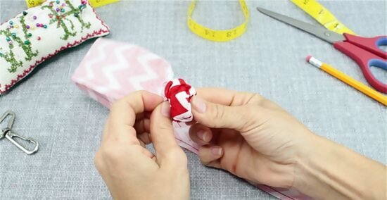 Pinch and roll your fabric to turn it inside out. Begin tucking and rolling your stitched strap so the hem is no longer visible. Continue pinching and pulling the material until the seam is no longer visible, and the fabric looks smooth. You can use a long tool like the bottom of a pencil to help push the fabric into its proper formation.