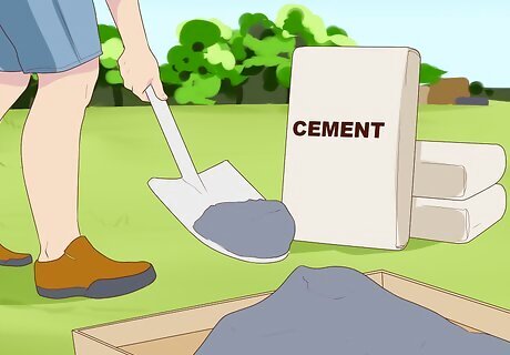 Mix concrete. A fast-setting concrete mix or any basic Portland cement mix will do. You'll need roughly one bag per post.