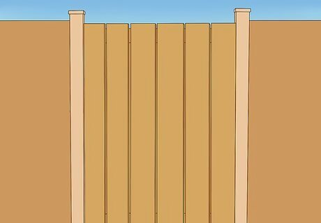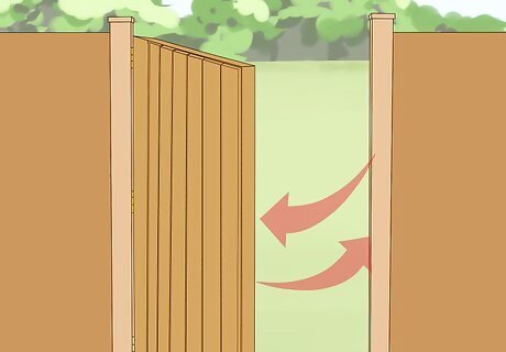 Add slats or pickets. Nail boards of your desired width, no more than 1” thick, to the outside of the fence gate, using 2” screws or nails driven into the top and bottom pieces. These can be butted against each other or spaced evening or unevenly, depending on your preferred look.