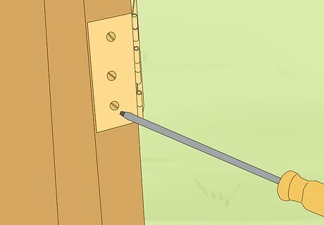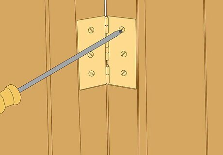 Secure one side of the hinges onto one of the fence posts. Usually, simply screwing the hinges into the fence post will suffice.