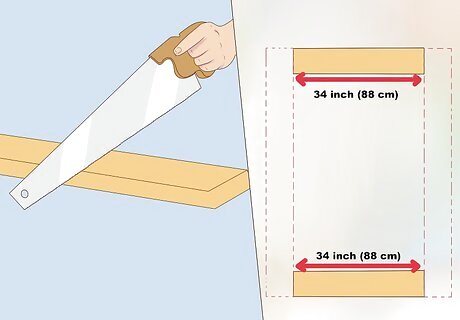 Cut top and bottom gate boards. Cut two 2" x 4" boards to 2 in. (or 4 cm) shorter than the distance between the posts. Make sure that you have enough room for the post and a fence to be there. For example, if you want a gate that spans 36 in. (or 92 cm), cut the boards to 34 in. (or 88 cm). You can replace the 2" x 4"s with any 1" or 2" thick boards with a width that matches the rest of the fence. The thicker the board, the better, to make the gate sturdy and durable.