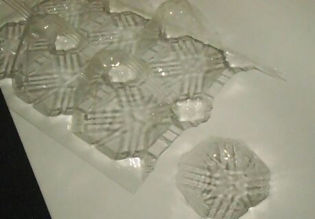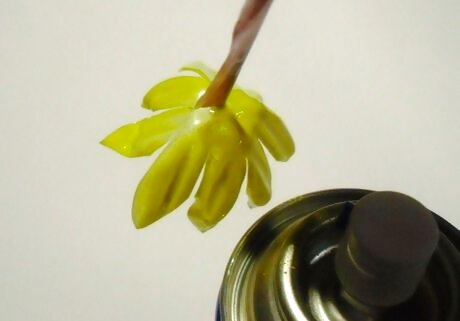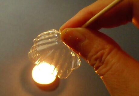 Ensure that you're in a well-ventilated area for this step. Also remove anything that is flammable away from the workspace area, then light the candle. Working carefully over the candle, start to shape the form of each flower that you're creating, using the candle heat to melt the petals into an appropriate form. Don't actually touch the flame or the plastic will burn – just aim the flower close enough for the heat to melt it. The following photos show a range of petal possibilities created just by moving the flower piece carefully over the candle flame: Tpf3_800.JPG Tpf4_162.JPG Tpf5_366.JPG Tpf6_150.JPG