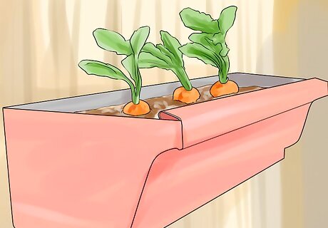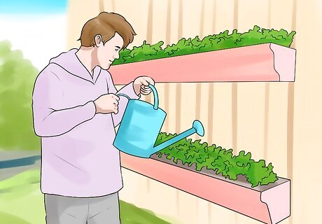 Choose suitable plants. Obviously, guttering is shallow. Hence, you'll only be able to grow plants with shallow roots, like lettuce, radishes, strawberries, cacti and herbs. Many small annuals could be grown in this guttering style, and will brighten up the fence or wall.