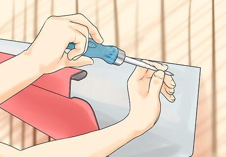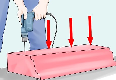 Attach the guttering to the chosen spot. Screw the guttering lengths to the fence or wall. Drill holes through the guttering and align these with the fence or wall, and drill holes in the exact same positions. Then add the screws to keep the guttering firmly in place. The exact type and method of attachment will depend on the material you're attaching to, as if varies between wood, brick, veneer and other surfaces. If you're not sure, simply ask at the hardware store for precise advice. Try this alternative: Use the frame of a pallet and attach the gutter lengths to the frame, on the inside. This nifty invention can be propped up anywhere in your garden! See the image for general guidance.