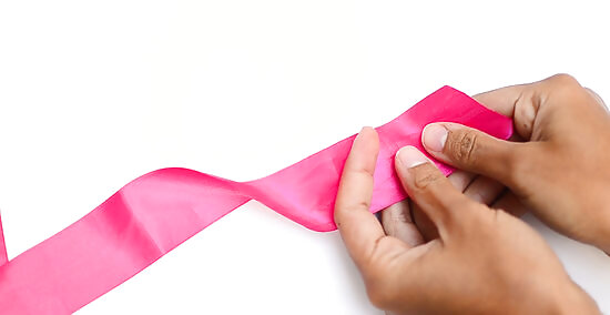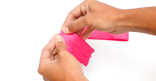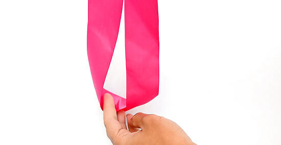 Cut a long strip of wide ribbon, with the ends slanting in the same direction. Choose a 2 ⁄4 in (5.7 cm) wide ribbon in a color that you like, then cut it down to 36 to 40 in (91 to 102 cm). Trim the ends so that they both go in the same direction: // or \\. Grosgrain ribbon works great for this, but you can use satin ribbon too. Chiffon ribbon would give you a nice, delicate look. If the ribbon is wired, scrunch the end down to expose the wires, then pull the wires out—just like you would a straw. For a nicer finish, ask an adult to help you singe the cut ends of the ribbon with a lighter or candle flame.