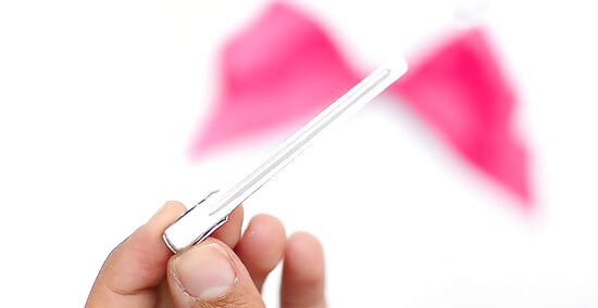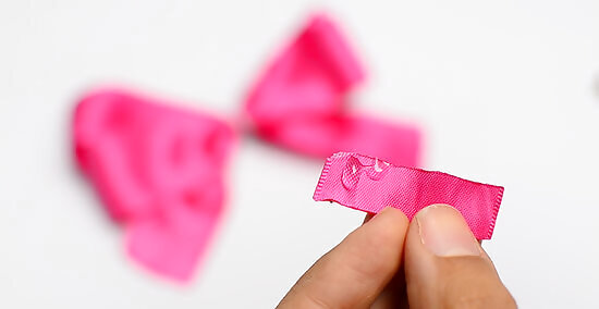 Open up an alligator clip, then slide it under the loop. If you accidentally glued the ribbons to the back of the bow, or if you're having trouble sliding the clip through, just hot glue it to the back of the bow instead.