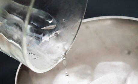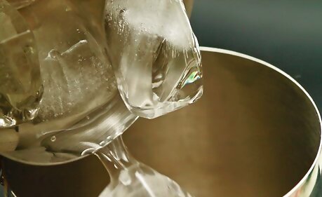 Dump the ice out of the cocktail glass.