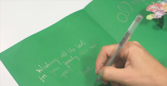Write a handwritten New Years' message inside the card. A New Years' card is the perfect opportunity to wish the recipient all the best for the year to come. It can also be a great way to share any updates from the year and to let them know your plans for the year to come. If you prefer not to write by hand, type your message on the computer, print it out, and then stick it inside the card. For example, “We wish you a wonderful year to come. Looking to the year ahead, Jake is starting school and Ryan will start Grade 6. John and I are continuing our current jobs and are looking forward to a trip to Hawaii in April. Hope all is well with you and the family. Hope to see you all soon. Much love!”