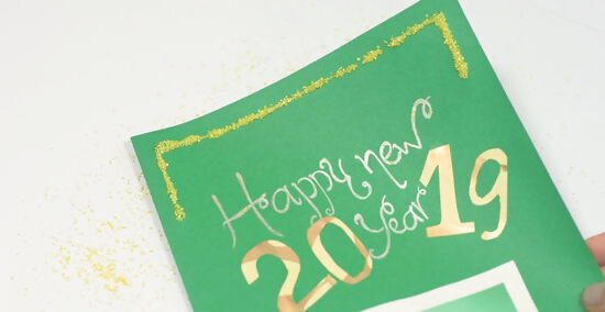 Use glitter if you wish to capture the festive spirit of the season. Use glitter or sequins to create a border around your card. Alternatively, use the glitter or sequins to create a pattern on the card. This helps to give your card a bright and festive look. Place a thin layer of glue where you want the glitter and then sprinkle the sequins or glitter evenly over the area. A personal photo stuck on a card with a sequin border would look striking. For a simple but effective option, make a fireworks pattern with hot glue and then sprinkle glitter over it. This is a great on-theme look! To create a geometric look, stick sequins on your card in a geometric pattern, such as zig-zags or hexagons.