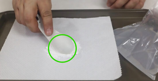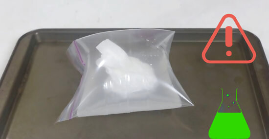 Add the capsule to the bag. Drop the capsule in the bag, seal the bag, and step away. The moment the capsule goes in, vinegar starts to saturate the tissue paper and contact baking soda. As this happens the paper will degrade and unravel until more and more baking soda reacts. This reaction produces carbon dioxide, which builds up pressure in the bag until the bag explodes. You can use these same chemicals to make a cool volcano.