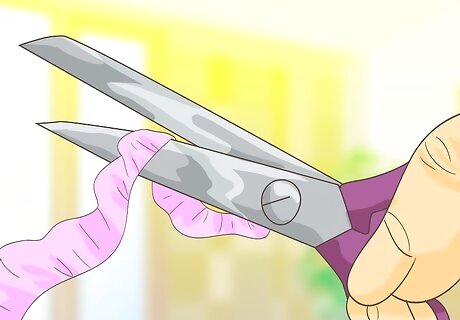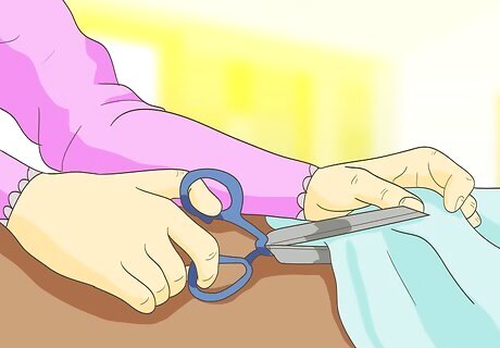 Cut the fabric for your cape. In the movie Frozen, Elsa has a beautiful see-through cape that trails behind her wherever she goes. You can give this effect to your costume by cutting a length of your see-through fabric slightly narrower than waist width if you are attaching it to the waist, and flare it slightly toward the bottom. A waist-cape is recommended for young children to prevent any accidents or choking while at play, but older children may want a full cape. You can do this by cutting your fabric a little narrower than shoulder width and flaring it toward the bottom.