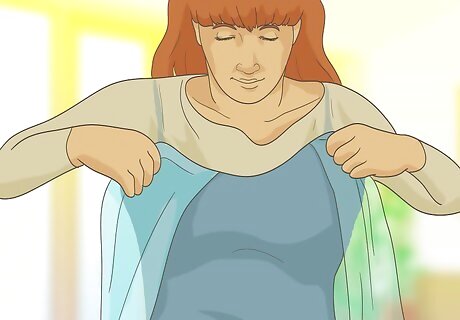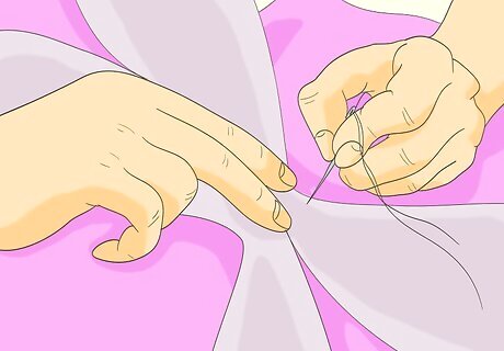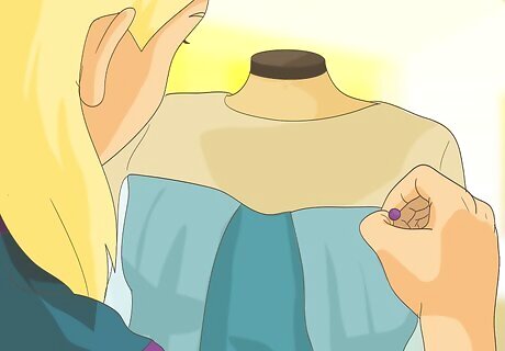 Attach your cape. You may have to make some adjustments when you put the costume on for the first time, but your cape can be easily made by attaching your fabric with safety pins. Along the back half of the waist of your skirt, pin your see-through fabric. For a full length cape, use your safety pins to attach your fabric along the back half of the neckline. You may want to use very small safety pins, which will hide more easily in the folds of your cape.