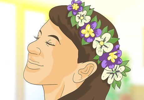 Add finishing touches. You may want to use some body glitter to give the wearer of this costume look truly enchanting. You should try on any floral bracelets or necklaces you have that match or accent the color of your top and tutu. You should also check the look of your tiara - you may want some glitter there, too!