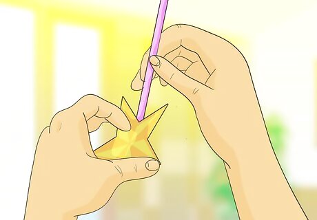 Make a fairy wand. You can use a single pipe cleaner for the handle of your fairy wand, or you could twist a few together to give the handle of the want a little more weight and substance. Take another pipe cleaner and bend it into the shape of a star so that both ends meet at the bottom concave part between the two bottom points. Then twist the ends of your star to the top portion of your wand handle to complete the wand. Your costume might look great with a wand made from pipe cleaner that matches the color of your costume, or you may want to give this feature pop by choosing a contrast color instead.