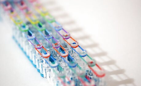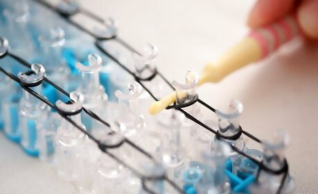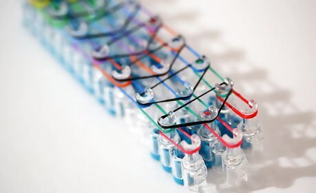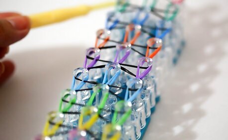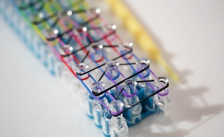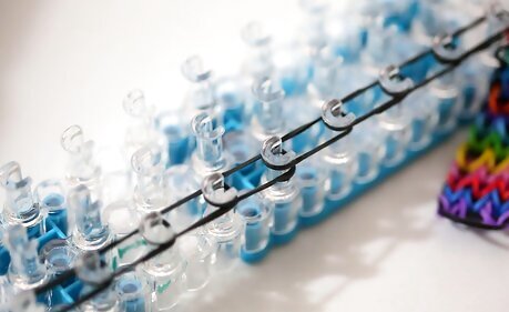 Repeat this process. Continue the process across the whole Rainbow Loom. You should end up with something that looks like the image above (like a series of connected circles).