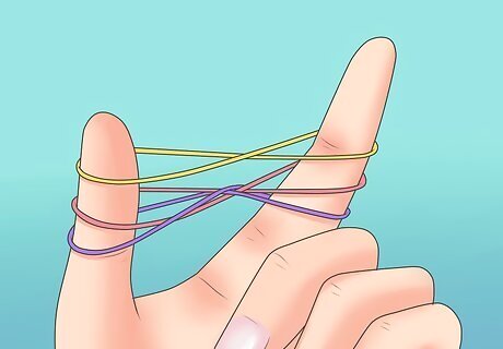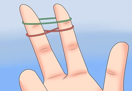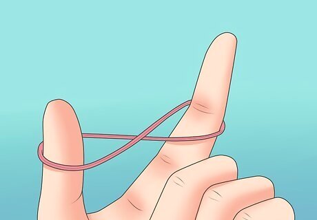 Make a rubber band into the shape of an 8. Put one loop on each finger.