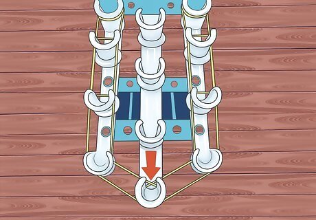 Place the first band diagonally. Place your first rubber band diagonally on a peg. Starting with the first middle peg is recommended. It doesn't matter what side you go to when you move the band diagonally, but stick with it.