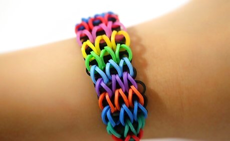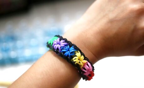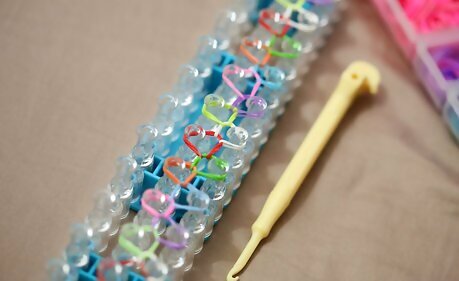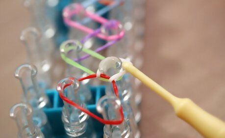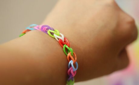 Remove the bands from the loom. Remove the rubber bands from the loom, carefully. Stretch the bracelet out.