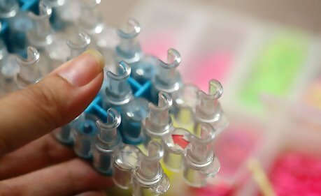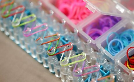 Set up your Rainbow Loom kit. Read the instructions that came with your loom and set it up like the directions say. Make sure the U-shaped pegs are facing up. The arrows should be facing away from your body.