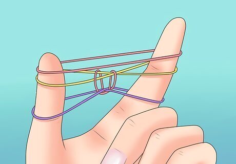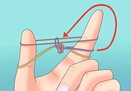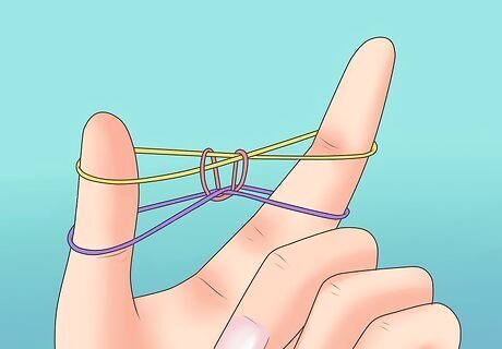 Put another band over on your fingers. However, this time, do not place it in the shape of an 8.