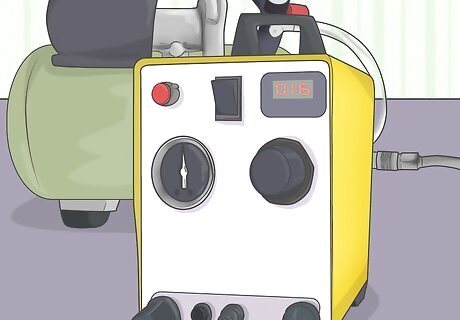 Set up your cutting implements, if necessary. You will need to hook up the appropriate tanks and gauges, turn off the necessary regulators, put on your gloves, and light your torch with your striker. If you haven't performed this process in a while, you may want to revisit how to use a cutting torch, or instead of using a plasma torch, find a facility nearby that has a laser cutter you can use to fashion your tomahawk.
